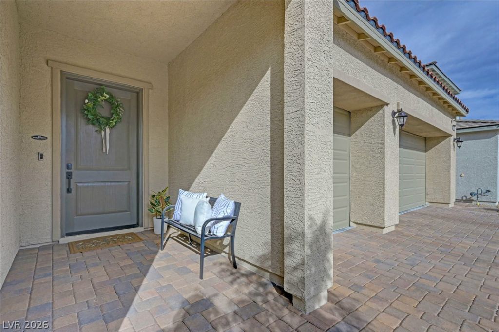 Gorgeous two-story Toll Brothers home in the desirable Skye Canyon community, offering modern luxury and thoughtful upgrades throughout. The stunning kitchen features upgraded cabinets, quartz countertops, a designer backsplash, stainless steel appliances, pot filler, and a spacious butler's pantry complete with a sink and beverage refrigerator. Wood-like vinyl plank flooring enhances the entire home, adding warmth and style. This impressive 5-bed, 5-bath layout includes a downstairs media room, an open loft upstairs, and beautiful wood panel accent walls that elevate the home's design. The large backyard is perfect for entertaining with its sparkling pool, relaxing spa, BBQ and covered patio offering plenty of room for gatherings. Most of the furniture can be included in the home and all TV's included, making this an exceptional move-in-ready opportunity. This is a must see