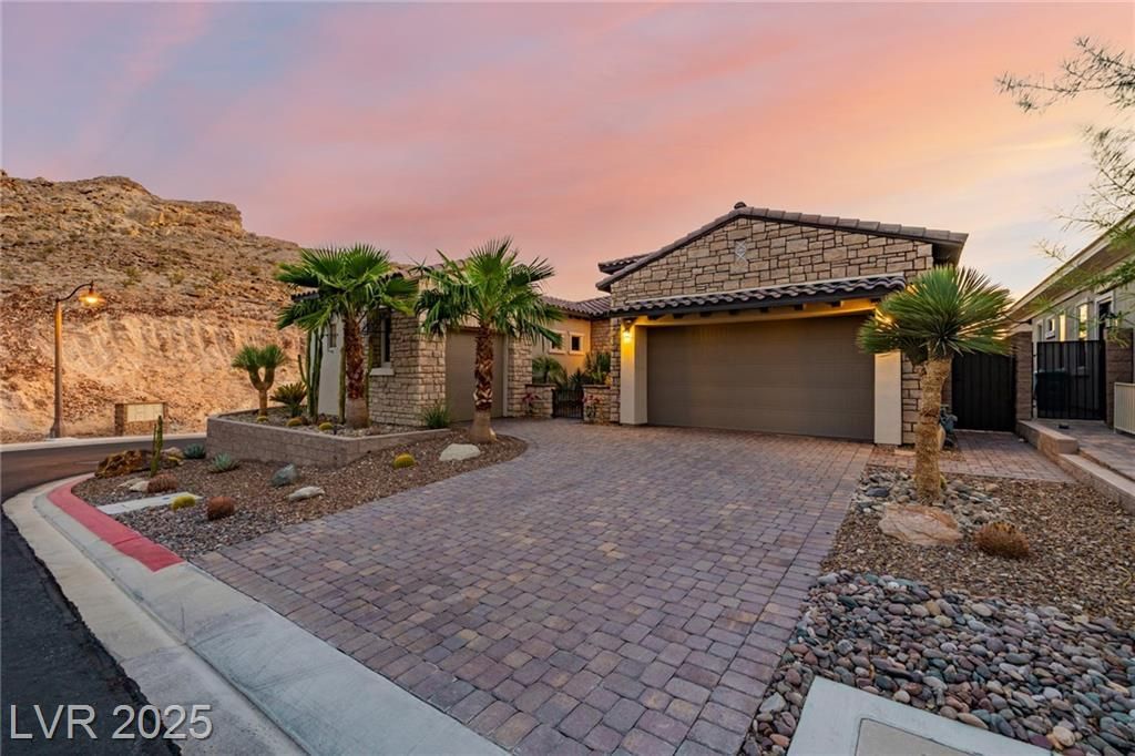 Welcome to Lake Las Vegas, a resort style community known for shimmering lake views, gated privacy, scenic walking paths, and exceptional recreation. Residents enjoy access to the Lake Las Vegas Sports Club with a lounge style pool, tennis and pickleball courts, fitness programs, cycling and running clubs. Additional community features include a clubhouse, community pool, and social gatherings that create a true luxury lifestyle. This stunning single story home sits on a private corner lot with unobstructed Strip skyline views. The open layout offers 3 bedrooms, 3.5 bathrooms, and a 3 car garage. The chef inspired kitchen includes an oversized island, stainless steel appliances, and a large walk in pantry. The primary suite features abundant natural light, a soaking tub, stand in shower, and custom walk in closet. The backyard offers a covered patio and therapeutic salt water heated pool. Sold fully furnished excluding artwork.