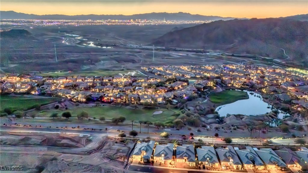 Enjoy unobstructed views of the full Las Vegas Strip, a nightly spectacle from your own home! This rare desert contemporary in a boutique gated enclave of 49 homes in Lake Las Vegas w/ privacy & unobstructed views of the Spring Mountains & Wetlands. 3BD, 2,541 sq ft w/ soaring ceilings, modern finishes & an open flr plan. The kitchen w/ granite counters, SS appliances, Spanish tile backsplash, custom cabinetry, walk-in pantry & grand island?perfect for entertaining w/ Strip views. An expansive great rm w/ statement fireplace & built-ins opens through a triple slider to a resort-style retreat w/ brick pavers & putting green. Sunsets over the mountains & Strip set your nightly backdrop. The luxe primary suite is a spa-inspired retreat w/ walk-in closet. Plantation shutters & light-filtering shades elevate interiors. 3-car garage offers epoxy flrs, cabinetry, overhead storage & direct interior access. SID & LID paid off. Hardwired for monitored alarm system. Pure elegance w/ iconic views!