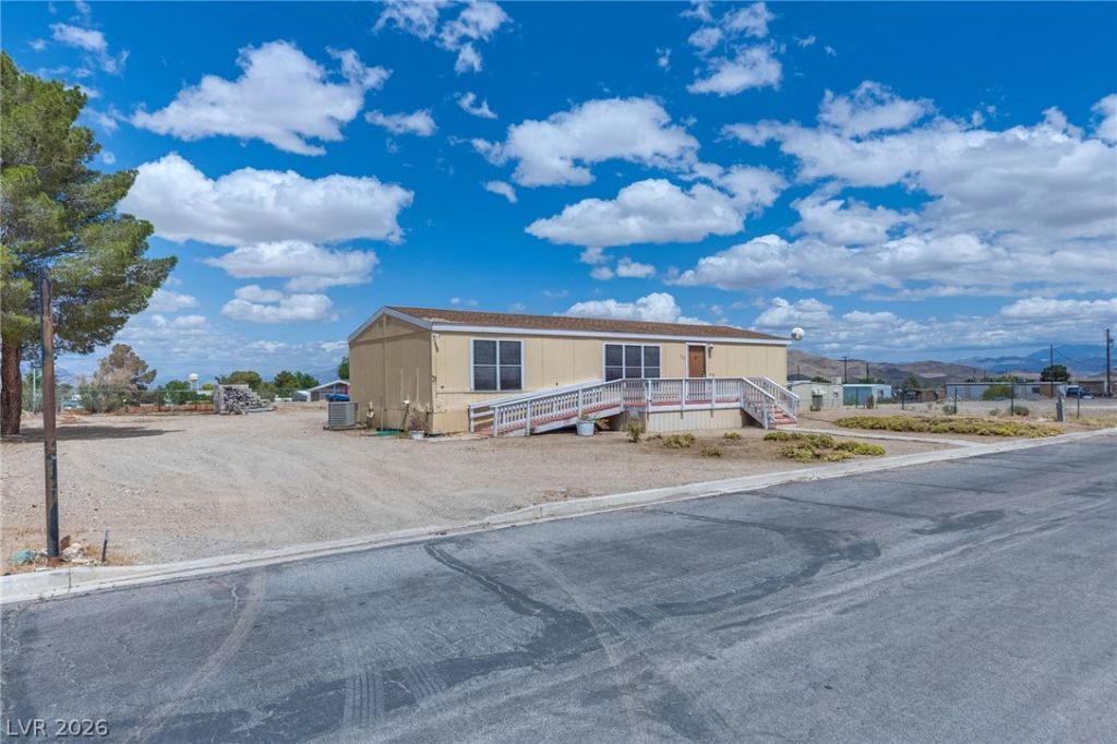 Welcome to affordable desert living in Indian Springs, NV. This 2-bedroom, 2-bath manufactured home?converted to real property?sits on a spacious 11,326 sq ft lot, offering room to expand, customize, or enjoy open space. The functional layout provides comfortable living areas, ideal for both owner-occupants and investors. The large lot allows for RV parking, additional structures, or outdoor entertaining under Nevada skies. Located just a short drive from Las Vegas and near Creech Air Force Base, this property offers a quieter lifestyle with convenient access to the city. Enjoy privacy, mountain views, and the charm of small-town living. A great opportunity to own real property in Southern Nevada at an accessible price point.