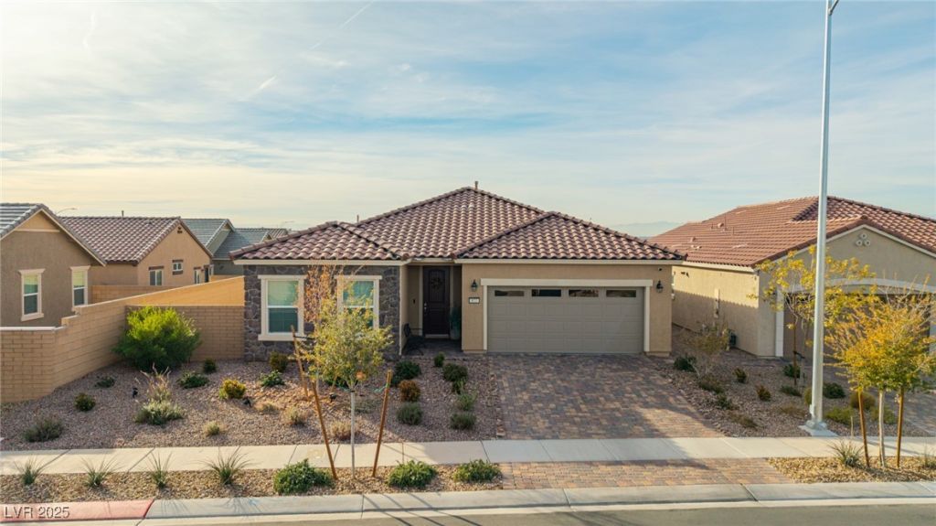 Welcome to this nearly brand new 3 bedroom, 2 bathroom home built in 2024 by Story Book by Toll Brothers, located in the highly desirable master planned community of Cadence Henderson. Sitting on an oversized lot, this immaculate home features professionally designed landscaping, a pavestone driveway, and striking rock accents that create exceptional curb appeal. Inside, no expense was spared with upgraded luxury vinyl plank flooring, upgraded cabinetry, stainless steel appliances, water softener, security cameras, and an open, light filled floor plan. The spacious primary suite is thoughtfully separated from the secondary bedrooms and offers abundant natural light and comfort making this home truly move in ready. Enjoy Cadence amenities including parks, walking trails, pools, fitness areas, pickleball courts, and community events, all just minutes from shopping, dining, and freeway access.